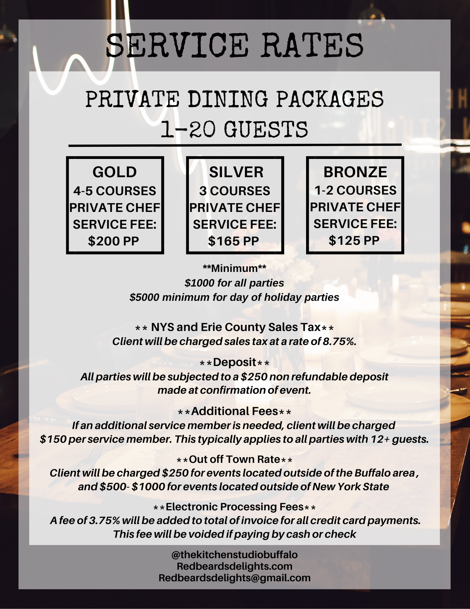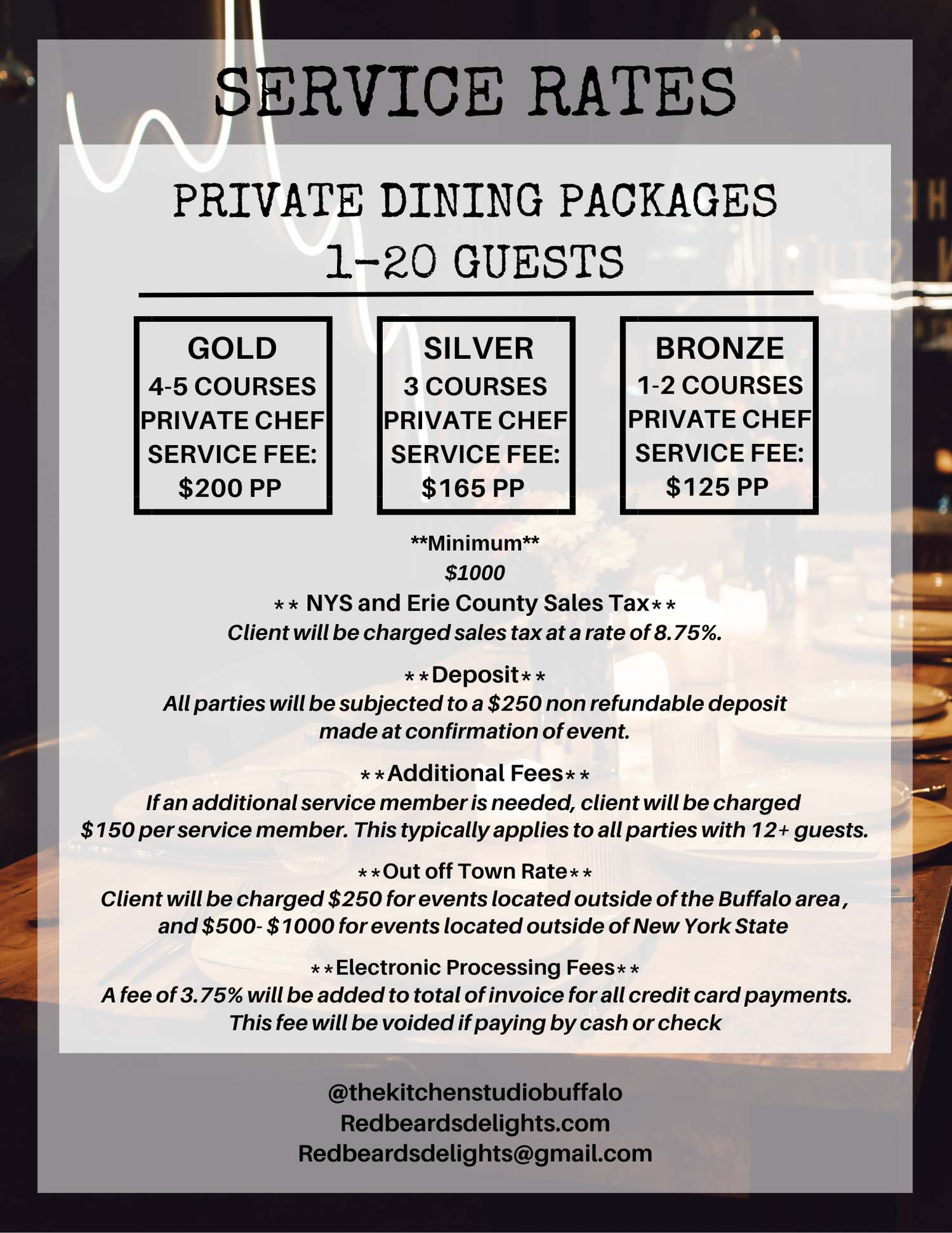 The Kitchen Studio offers a unique shared private dining experience right in the heart of downtown Buffalo. Our open kitchen studio allows guests to sit back and watch as each course is being prepared by Chef Red Beard.